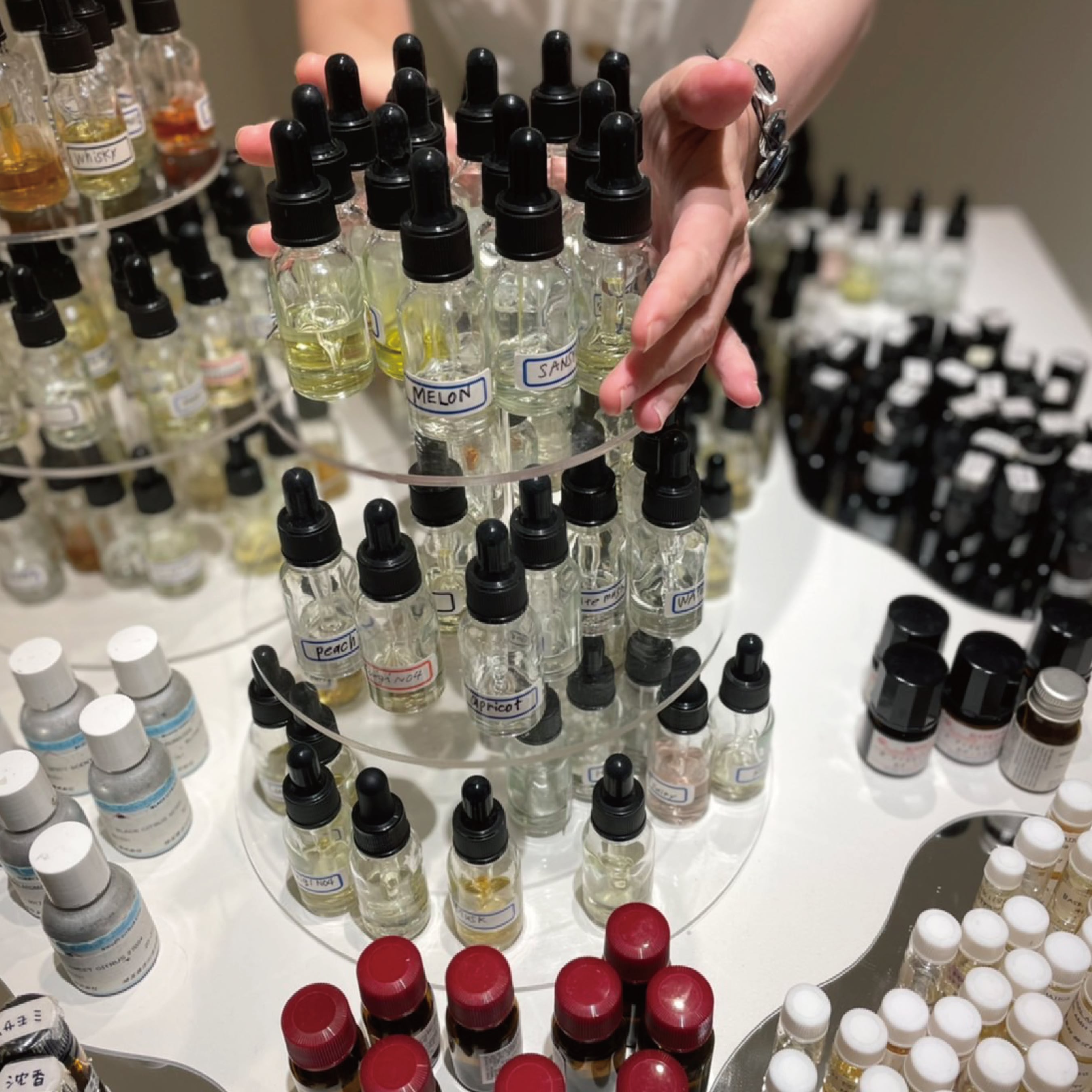 まずはどんな香りがあるのかを知り、そしてそれぞれ自分がどんな香りが好きなのかを知るワークを通し、その後オリジナルの香りを調香して頂きます。